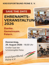 Ohne Ehrenamt kein Sport: Der Kreissportbund Peine e. V. lädt auch 2026 wieder zu einer besonderen Ehrenamtsveranstaltung ein, um den vielen engagierten Helferinnen und Helfern in den Sportvereinen Danke zu sagen.