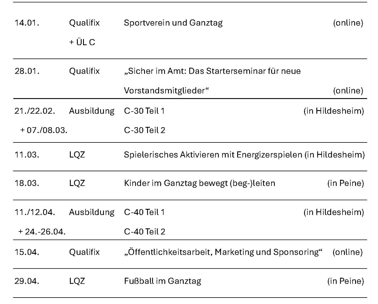 Aus-, Fort- und Weiterbildungen in der Sportregion im ersten Quartal 2026